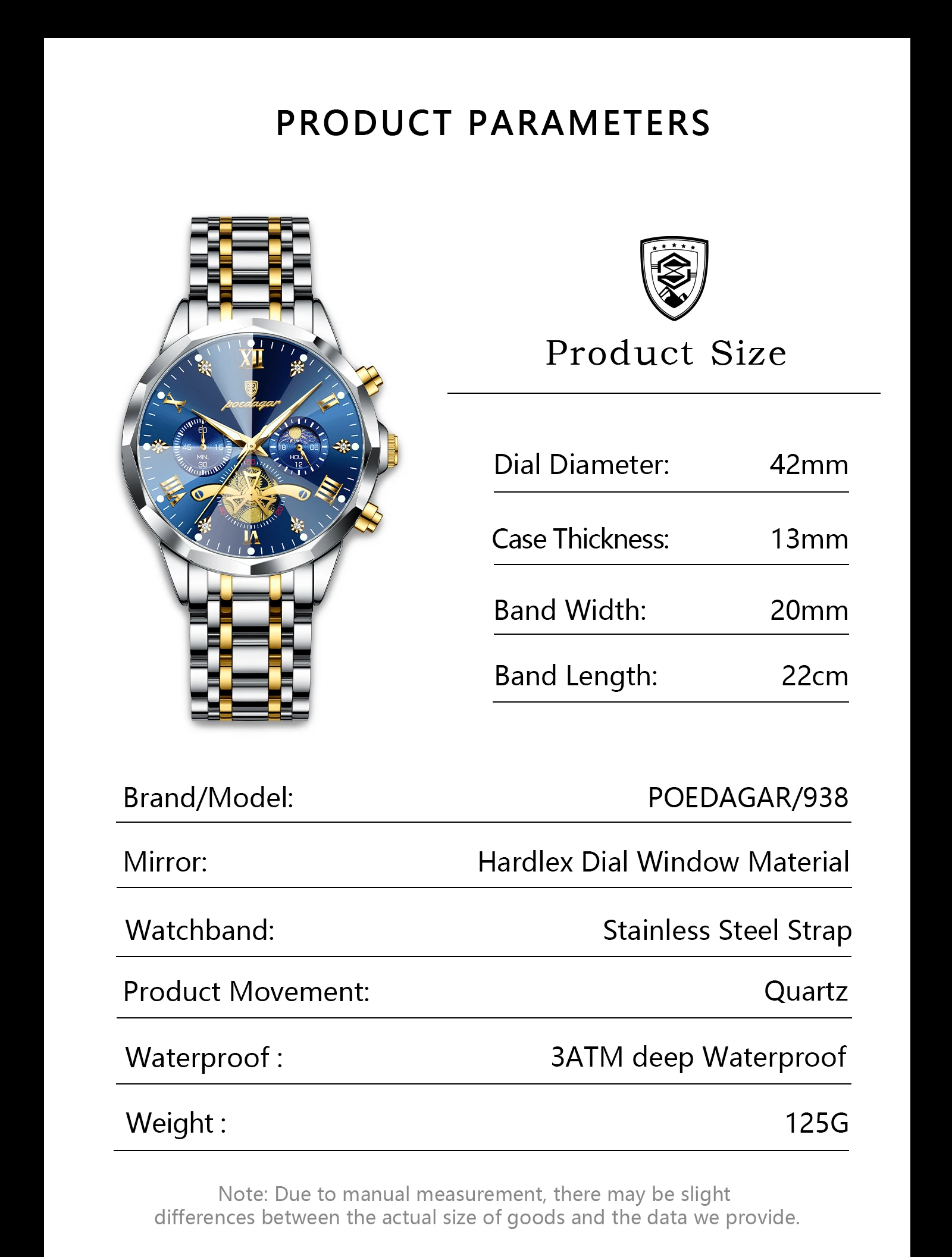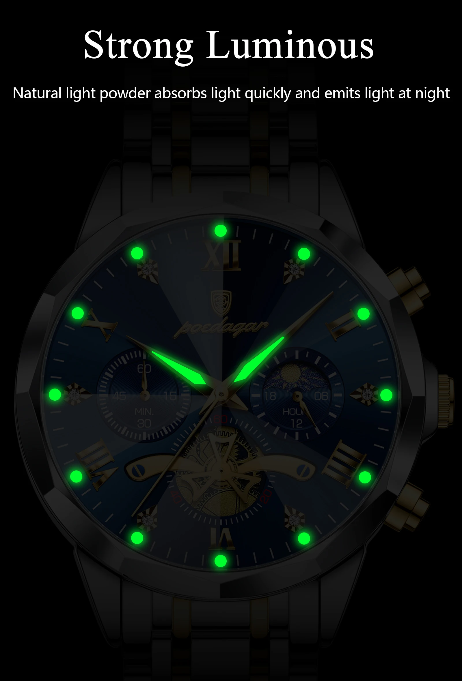 Experience the pinnacle of executive craftsmanship with the POEDAGAR 938 Chronograph, a high-performance timepiece designed for the man who demands both elegance and utility. Encased in surgical-grade stainless steel and protected by a scratch-resistant Hardlex window, this "Choice" watch features a sophisticated Roman numeral dial that exudes a timeless, professional charm. Engineered for an active lifestyle, it boasts a precision quartz chronograph, a 3Bar water-resistance rating suitable for swimming, and luminous hands for effortless visibility in low-light environments. The seamless 22cm stainless steel band is secured by a premium push-button hidden clasp, offering a streamlined, "Luxury Brand" aesthetic that transitions flawlessly from high-stakes boardroom meetings to weekend excursions.